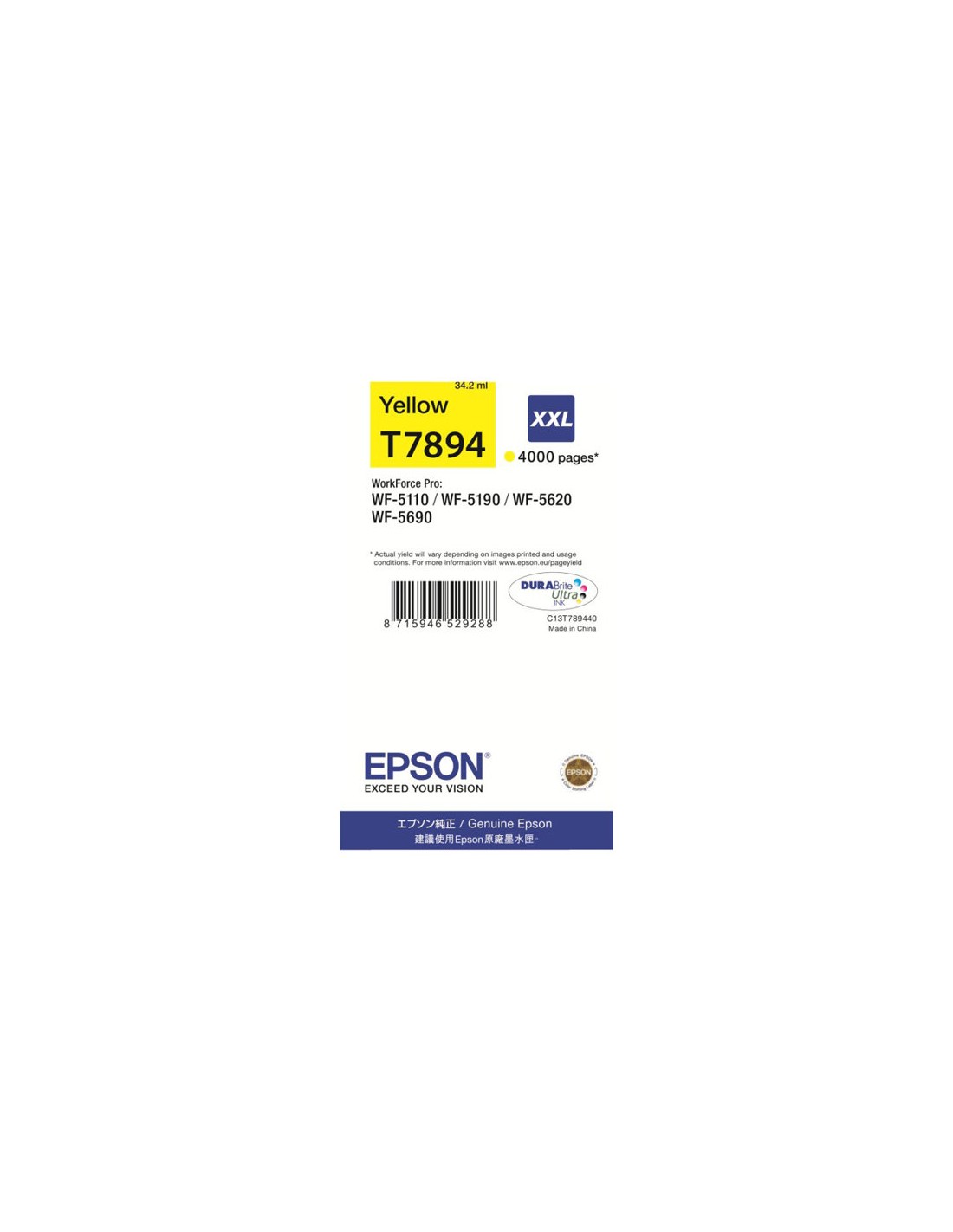 | Descripción del producto | Epson T7894 - tamaño XXL - amarillo - original - cartucho de tinta |