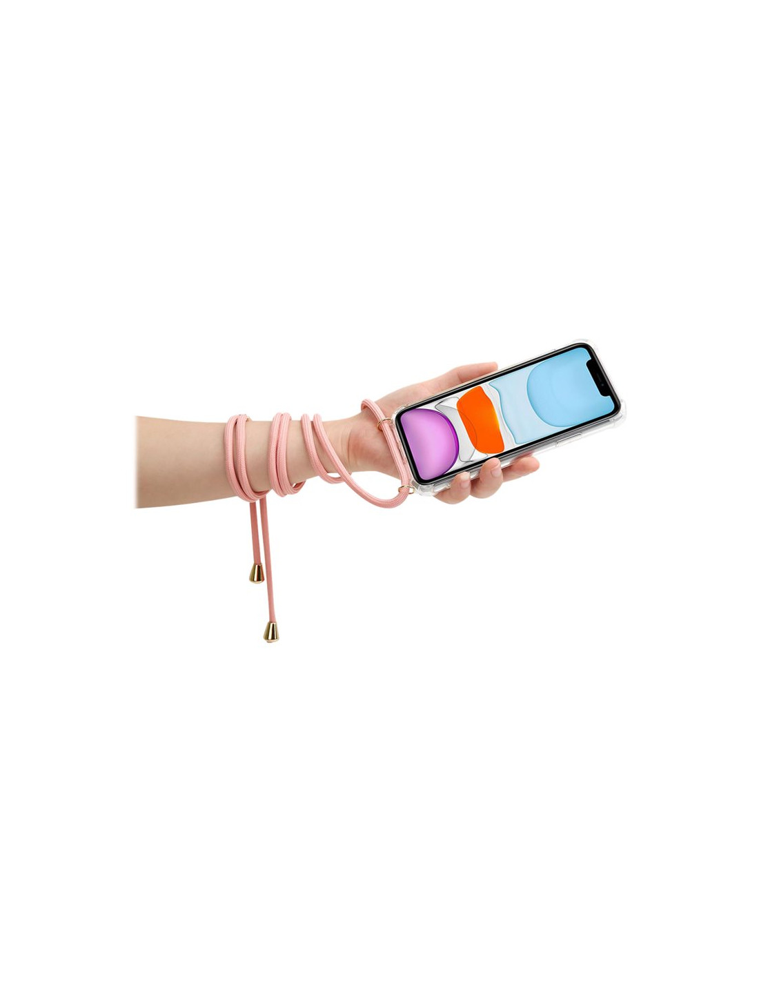 COMPRAR FUNDA MOVIL BACK COVER CELLY SILICONA TRANSPARENTE + CORDON PINK IPHONE 11 PRO.