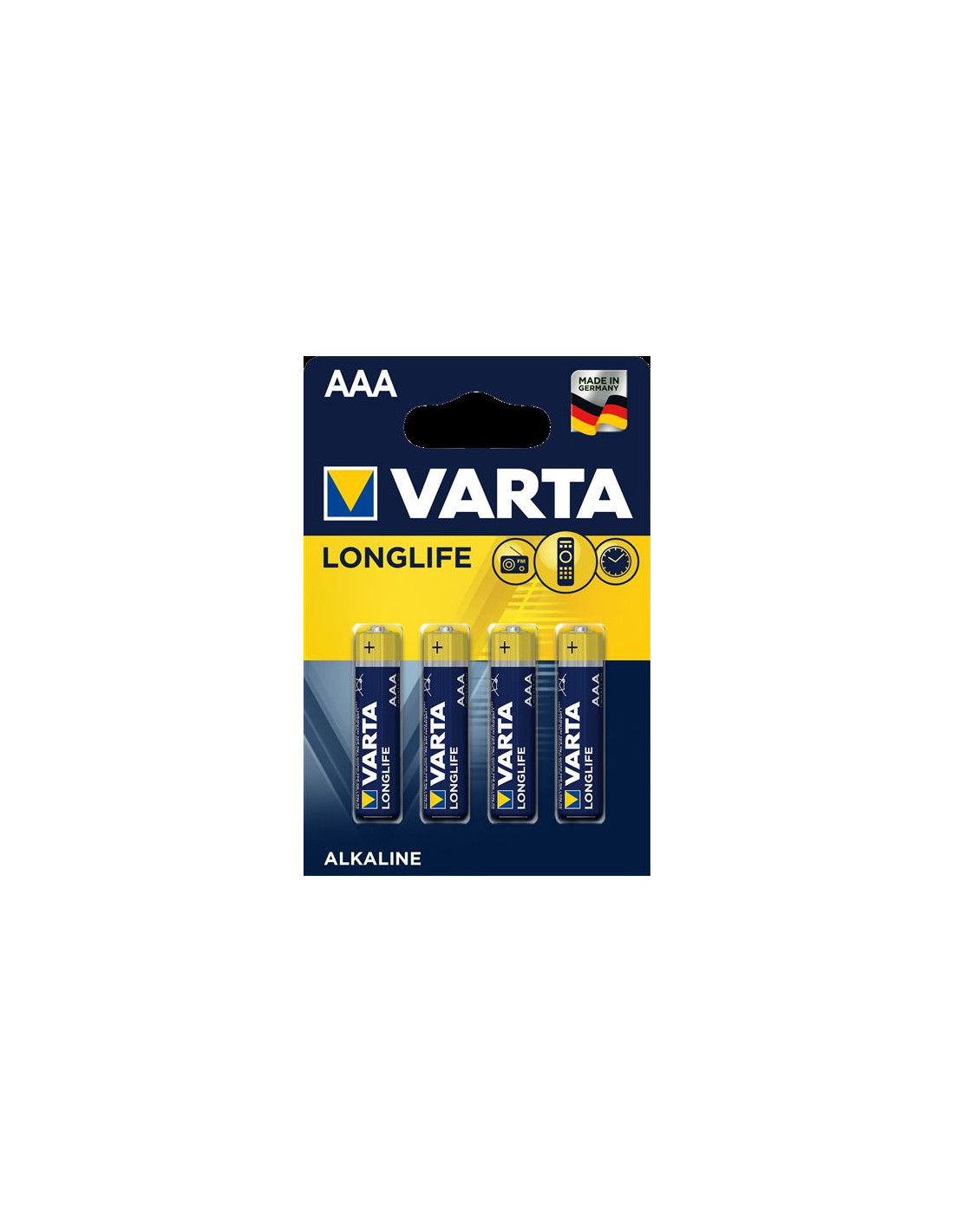 Tipo: Pila; Específicas tipología: AAA; Arregla químico: Alcalina; Tensión nominal: 1,50 v; Recargable: No; Cantidad por confección: 4