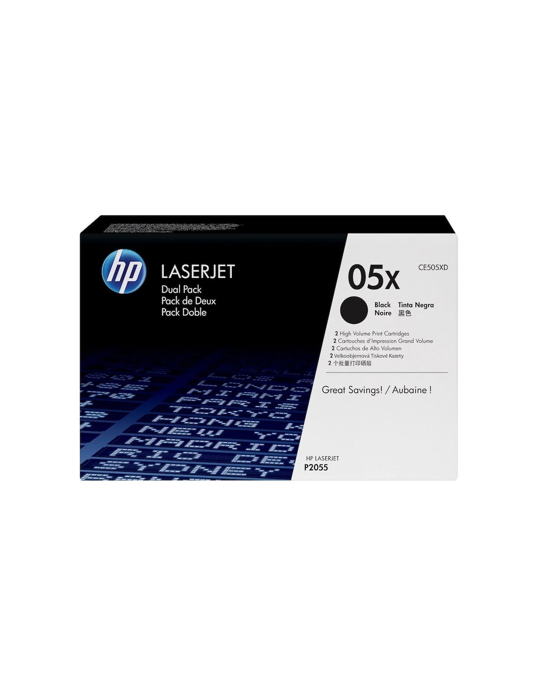 | Descripción del producto | HP 05X - paquete de 2 - Alto rendimiento - negro - original - LaserJet - cartucho de tóner (CE505XD) |